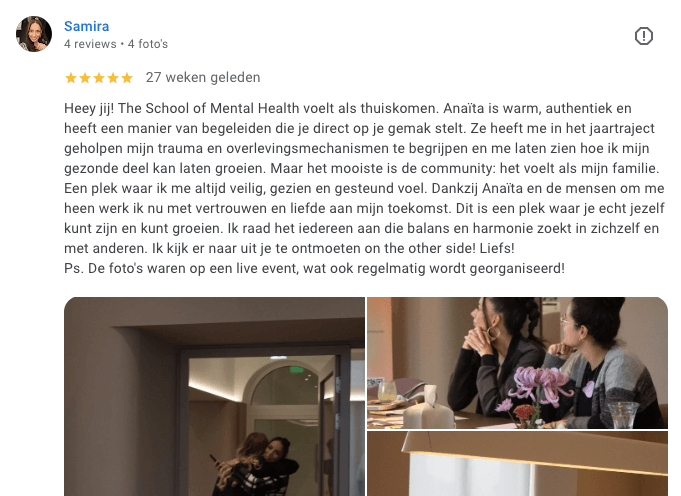 Dat is waar ik in beeld kom. Ik ben mental health coach, NLP master, systemisch therapeut en oprichter van The School of Mental Health — een plek waar jede lessen leert die je eigenlijk opschool hadden willen leren over mentale gezondheid en emoties.